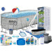 Цей набір для надземного басейну також включає фільтруючий насос, безпечну драбину, накриття для басейну та дозатор хімікатів ChemConnect™. Дозатор ChemConnect підтримує чисту, здорову воду в басейні, забезпечуючи стабільний рівень хлору, рівномірно розподілений по басейну. Конструкція з відкидним замком запобігає доступу до басейну без нагляду.