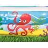 Басейн виготовлений з міцного ПВХ-матеріалу для довговічних і безпечних розваг. Два надувних кільця з барвистим принтом морських тварин додають басейну привабливості для малюків.