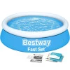 Приємний блакитний колір басейну доповнить будь-який інтер'єр присадибної ділянки. Завдяки достатній щільності надувний басейн Fast Set Bestway 57392 стійкий до розтягування і стирання.