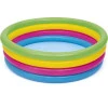 Надзвичайно привабливий надувний садовий басейн для дітей, який дозволить весело провести час у літні дні. Басейн призначений для дітей від 3 років і має об'єм води приблизно 522 літри, що дозволяє вільно плавати. Конструкція складається з 4-х надувних кілець яскравих веселкових кольорів.