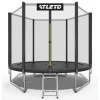 Батут Atleto виготовлений з високоякісних матеріалів (стійких до УФ). Оснащений 36 оцинкованими пружинами, закритими спеціальним прокладним матеріалом. Поверхня оточена захисною сіткою наблискавці.