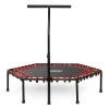 Зручна рукоятка з мʼякими нековзкими ручками дозволяє виконувати різні фітнес-вправи. Крім того, ви можете вільно регулювати його висоту в залежності від ваших потреб і зростання. Це також допоможе зберегти рівновагу, коли ви інтенсивно працюєте над своєю фігурою та фізичною формою. Фітнес-батут Neo Sport є перевіреним тренажером, тому можете бути впевнені, що він прослужить вам довгий час. Ще однією перевагою є простота збірки і нековзні накладки на ніжках батута, які забезпечують стабільність під час стрибків.