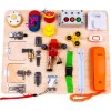 Представляємо чудову дерев'яну багатофункціональну дошку, яка чудово підійде як сенсорна іграшка. Розвиваюча іграшка призначена для дітей від 3 років. Граючи з цим чудовим навчальним набором, ваша дитина розвиває дрібну моторику, логічне мислення та аналіз причин і наслідків.