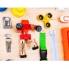 Вивчення елементів справжньої майстерні: діти люблять наслідувати дорослих, а навчальна сенсорна дошка дозволяє їм відчути себе справжніми ентузіастами DIY. Завдяки таким реалістичним елементам, як інструменти та механічні частини, малюки зможуть вивчити назви та функції основних інструментів. Це не тільки розвиває їхні знання, але й стимулює уяву та творчі здібності.
