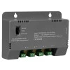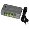 Блок живлення імпульсний Kraft KRF-1204B (4CH) на 4 канали навантаження, з вихідною напругою/струмом 12 В/1 А на кожен канал, загальна вихідна потужність 60 Вт, регулятор напруги для компенсації довжини кабелю, номінальна вхідна напруга 230 В. Призначений для настінного монтажу.