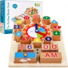 Дерев'яний розвиваючий годинник для вивчення часу та визначення часу рекомендований дітям від 12 місяців . Барвистий набір абсолютно безпечний для дітей через відсутність гострих або занадто дрібних елементів і розписаний нетоксичними фарбами .