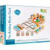 Вся іграшка розміщена на дерев'яній основі з місцями для окремих блоків . У верхній частині можна побачити великий стрілочний годинник , який керується вручну. Введено поділ на години та хвилини. Навколо циферблата розташовані блоки різної форми з написаними на них цифрами, які також символізують годинник.