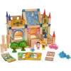 У набір входять дерев'яні стовпи , які є опорами кожної будівлі, і плоскі вставні блоки , які є стінами та парканами в будинках. Барвисті, кумедні малюнки на висувних блоках порадують дітей і спонукають їх будувати . Додатково в набір входять конектори у вигляді кубиків і башточки, які єдині виготовлені з пластику.