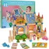 Набір із 128 будівельних деталей дозволяє дітям створювати різноманітні будівлі . Фігуркам дівчинки та хлопчика потрібен будинок, магазин і навіть школа - все це та багато іншого можна побудувати з дерев'яних кубиків .