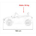 Іграшковий автомобіль використовує електропривод на основі 2 двигунів по 12 В кожен. Живлення забезпечує ємний акумулятор 12V/7Ah. Його необхідно заряджати регулярно протягом приблизно 8-10 годин. Рівень заряду перевіряється на спеціальному індикаторі в кабіні.