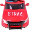 Пожежна машина на акумуляторі має стандартне аудіообладнання, тобто виходи MP3 , SD , AUX та USB . Діти також можуть насолоджуватися музикою з радіо та звуками, вбудованими в кермо. Ви також можете побачити традиційні світлодіодні ліхтарі спереду та ззаду автомобіля .