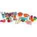 - фіктивні харчові продукти: гарбуз, салат, краб, курка, 2 смажені яйця, виноград, риба, сосиски, кетчуп, коробки печива, молоко та морозиво, шоколадне молоко, суп швидкого приготування,
