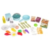 Дитяча інтерактивна кухня з функцією світла, звуку і краном, з якого витікає вода, а також безліччю аксесуарів, для дітей від трьох років. Кухня чудово виготовлена з пластику найвищої якості та має яскраві кольори, що заохочують дитину до гри. На стільниці кухні знаходиться інтерактивна панель зі звуками варіння, смаження та мелодіями, а також підсвічуванням. У комплекті також є макет духовки з відкриваними дверцятами та макет холодильника з відкриваними дверцятами. Іграшка працює від батарейок типу 3 x AA 1,5 В (не входять до комплекту).