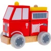 Дерев'яна машинка із зображенням автомобіля, що нагадує пожежну - чудова іграшка для дітей від двох років. Автомобіль складається з різнокольорових дерев'яних блоків без гострих країв. Блоки абсолютно безпечні, а іграшка допоможе дітям дізнатися про правоохоронні органи через гру.