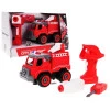 До набору входить знімна пожежна машина, викрутка/дриль з 2 батарейками типу АА, які потрібно придбати додатково, та ручна викрутка. Дриль дозволяє вкручувати та викручувати деталі, роблячи гру більш реалістичною та захопливою. Крім того, після того, як панель управління вставлена в автомобіль, ви можете використовувати пульт дистанційного керування на частоті 2,4 ГГц, щоб рухати автомобіль вперед і назад.