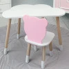 Дитячий білий стіл хмарка і стільчик ведмедик дитячий рожевий. Дитячий столик білосніжний.