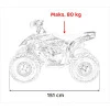 Квадроцикл працює на неетилованому бензині, а його бак має ємність приблизно 2 літри. Запуск автомобіля здійснюється за допомогою електрозапалювання E-START. Квадроцикл має ланцюгову передачу.