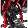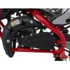 Безпека водія є пріоритетом, тому RENEGADE 50R оснащений передніми та задніми дисковими гальмами з механічним керуванням. Телескопічна підвіска спереду та моноамортизатор ззаду забезпечують плавну їзду навіть по нерівній місцевості. Крім того, посилений задній поворотний важіль підвищує стійкість автомобіля.