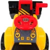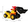 Машинка їздить в усіх напрямках, живиться від акумулятора 6V/4Ah. Дитина керує бульдозером за допомогою керма, яке з'єднане з поворотними колесами. Великий ківш на плечі розміщений спереду машинки. Керувати ним малюк буде за допомогою спеціальної ручки та важеля. Це дасть можливість зачерпнути, наприклад, пісок або іграшки у відро, що зробить поїздку більш привабливою.