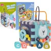 Кожна сторона куба пропонує різні інтерактивні функції, які сприяють розвитку вашої дитини. Дитина може грати з кермом і важелем коробки передач, розвиваючи координацію рухів, або тиснути на світлового ведмедика, який видає звуки і вчить букви англійською.