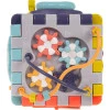 У кубику також є сортувальник форм із 4 елементів і рухома книга, яка допомагає дітям навчитися розпізнавати форми та кольори. Перемикання передач, повзунки та інші рухомі елементи розвивають ручні навички. Насичені кольори, світлові та звукові ефекти роблять кубик улюбленою іграшкою малюка, сприяючи його розвитку.