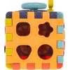 Сортувальник форм і звукові кнопки навчать малюка розпізнавати форми, букви та звуки, підтримуючи його сенсорне виховання. Кубик стимулює допитливість і креативність, пропонуючи багато можливостей для гри та навчання.