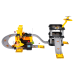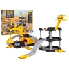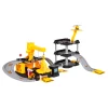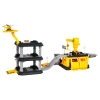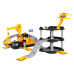 У комплекті є три металеві будівельні машини з рухомими елементами - екскаватор, навантажувач і автомобіль з молотом - а також вертоліт. Будівельний майданчик обладнаний ручним краном з гаком і гіркою для транспортних засобів. З'єднаний з ним паркінг має три рівні, паркувальні місця та майданчик для вертольота. Всі компоненти виготовлені з високоякісного пластику, стійкого до інтенсивного використання. Окремі частини легко з'єднуються між собою, утворюючи стабільне та естетичне ціле.