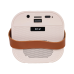 Комплект оснащений висококласним динаміком з передовою технологією декодування MP3, яка забезпечує чистий і потужний звук. Завдяки шумозаглушенню DSP і технології Bluetooth 5.0 з'єднання з іншими пристроями є стабільним, а відтворюваний звук — більш повним і динамічним. Динамік сумісний з телефонами, планшетами, телевізорами та комп'ютерами, підтримує популярні формати аудіофайлів, а вхід для карт пам'яті 64G-TF та порт USB типу C збільшують його функціональність. Корпус із класом захисту IPx3 захищає пристрій від бризок, а шкіряний ремінець полегшує щоденне використання. Кольорові світлові ефекти, що синхронізуються з музикою, візуально збагачують кожне виступ і їх можна легко змінювати або вимикати одним натисканням кнопки.