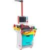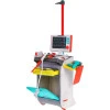 Візок з аксесуарами має 3 колеса, завдяки чому його можна вільно пересувати. У верхній частині знаходиться екран рентгену/ЕКГ, з якого висувається ростомір. Ви можете вимірювати дітей приблизно до 112 см, але вимірювальна стрічка також слугуватиме ручкою для тримання візка. На передній частині іграшки є висувна шухляда і містке відділення для зберігання, яке можна відкрити. З боків візка є 2 додаткові полички для аксесуарів.