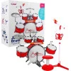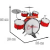Всі функції музичного набору з барабанами живляться від 4-х батарейок АА , тобто популярних батарейок, які не входять в комплект. Нижче наведено вміст іграшки з розмірами :