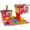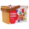 Набір складається з місткого кошика для пікніка, 4 чашок , тарілок, ложок і великого і маленького глечиків з носиком, що дозволяє дітям грати ролі в іграх на свіжому повітрі. Реалістичні ласощі , такі як печиво, круасани, картопля фрі та хот-доги, створять ще більше задоволення та урізноманітнять сценарії гри. Кожен елемент набору був виготовлений з увагою до деталей , що робить його безпечним і привабливим для дітей.