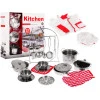 Багато укомплектований набір каструль і кухонних аксесуарів сподобається дітям від 3 років . Всі елементи набору виглядають дуже реалістично , ніби зроблені з нержавіючої сталі. Крім того, маленькі кухарі зможуть одягнути фартух і чепчик .