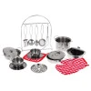 Аксесуари включають 2 каструлі, сковорідку, вок і навіть ситечко для приготування на пару. Додатково є набір чашок з блюдцями та ложками на 2 персони . Такий посуд , як ситечко, черпак, віночок і ложка для макаронів, розміщені на стильній підставці .