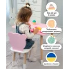 Ви можете зібрати повноцінний комплект – столик зі стільчиком в єдиному стилі. Такий набір стане зручним і практичним рішенням для дитячої кімнати, забезпечуючи малюкові комфортне місце для занять та ігор.