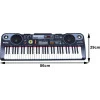 Живлення клавіатури здійснюється від блоку живлення , що входить у комплект, та 6 батарейок типу АА , які в комплект не входять. Точні розміри музичної іграшки наведені нижче: