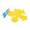У набір також входить 6 м'яких пазлів різних форм, які діти можуть обводити на килимку. Форми включають серце та зірку, а також геометричні фігури, такі як трикутник, квадрат, коло та шестикутник.