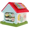 Кожна стіна будинку приховує різні атракціони, які сприяють розвитку пізнавальних і ручних навичок. На одній зі стін розміщений ведмедик, який при натисканні видає дружні звуки і світиться зеленим світлом, а кнопка у вигляді квітки змінює режими гри.