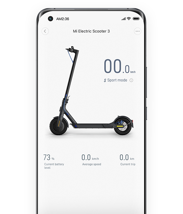 Синхронізуйте Mi Electric Scooter 3 з мобільним додатком Mi Home, щоб отримувати актуальну інформацію про роботу вашого електротранспорту і планувати майбутні поїздки. У додатку ви без проблем зможете оновити прошивку, заблокувати або розблокувати скутер.