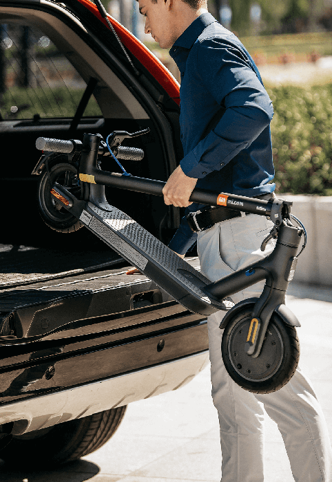 Полегшена надміцна рама Mi Electric Scooter 3 виготовлена з алюмінієвого сплаву Series 6 і має складну конструкцію. У складеному вигляді самокат займає зовсім небагато місця, його вага складає всього 13 кг, тому його можна брати з собою в офіс або перевозити в багажнику авто.