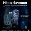 Нічне бачення реалізоване з допомогою 56 інфрачервоних світлодіодів з довжиною хвилі 940 нанометрів – такий діапазон не видимий для людського ока, тому фотопастку не буде видно в темряві. Дальність нічного бачення складає 25 метрів і це більше ніж у переважної більшості фотопасток!