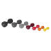 0,5 кг жовтий, 1 кг помаранчевий, 2 кг червоний, 3 кг фіолетовий, 4 кг світло-сірий, 5 кг темно-сірого кольору, 6 кг чорного кольору
