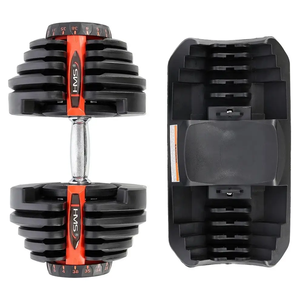 SR80 HMS — це гантель з регулюванням ваги. До складу набору входять штанга, 10 дисків і підставка. Цей продукт — ідеальне рішення для тих, хто тренується вдома, але він також чудово підійде для тренажерного залу, замінивши цілу стійку з традиційними гантелями.