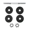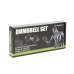 Штанга має рифлену ручку, завдяки чому вона не ковзає під час вправ. Різьбові гантелі разом із зіркоподібними грифами гарантують рівномірний розподіл ваги.