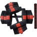 Завдяки універсальності, ви можете використовувати набір для занять з гантелями і штангою. Після занять з гантелями ви можете швидко об'єднати все в штангу без необхідності купувати пряму штангу окремо. Ви отримуєте цінний простір вдома або в домашньому тренажерному залі. Більше не захаращуйте свої чотири стіни - набір займає менше місця, ніж кілька наборів гантелей і окремих штанг. Пластини покриті шаром пластику, тому гантелі ідеально підходять для тренувань вдома - вони не подряпають підлогу! Шестикутна форма замість кола - вантаж не "їздить" по підлозі (особливо при нерівностях)