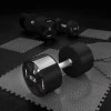 Кожна гантель HPC оснащена спеціально розробленою ручкою з антиковзною поверхнею, що забезпечує надійний і зручний захват. Хромована сталева ручка з рифленою структурою запобігає ковзанню рук, підвищуючи безпеку і комфорт під час тренувань.