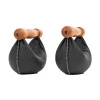 Dumbbells made of solid wood and hand-stitched genuine leather.