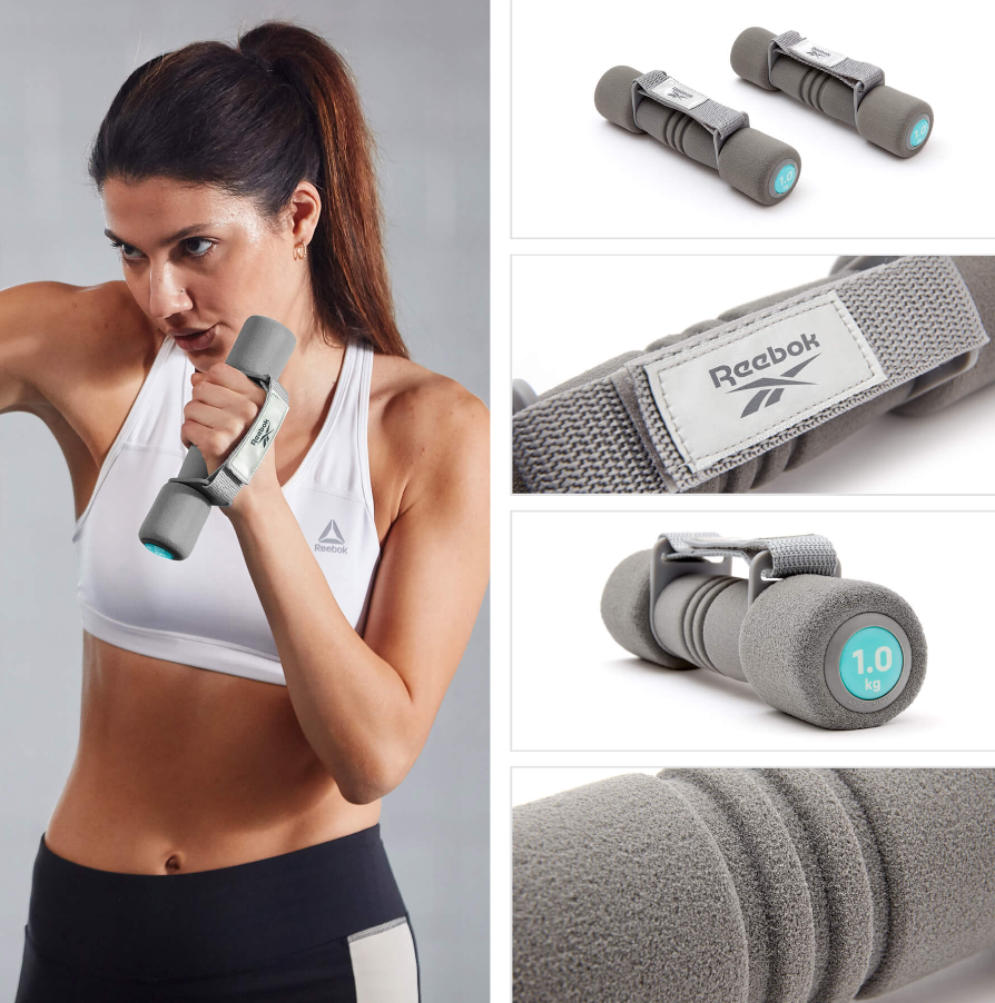 Ці гантелі з пінопластовим покриттям з ручками від Reebok призначені для покращення та підтримки фізичної форми користувача. Вага 2 х 1 кг робить їх ідеальними для фітнесу, загальних тренувань і бігу. Під час тренувань з легкою вагою вся робота виконується певними частинами м'язів. Це знижує ризик отримання травм під час тренування.