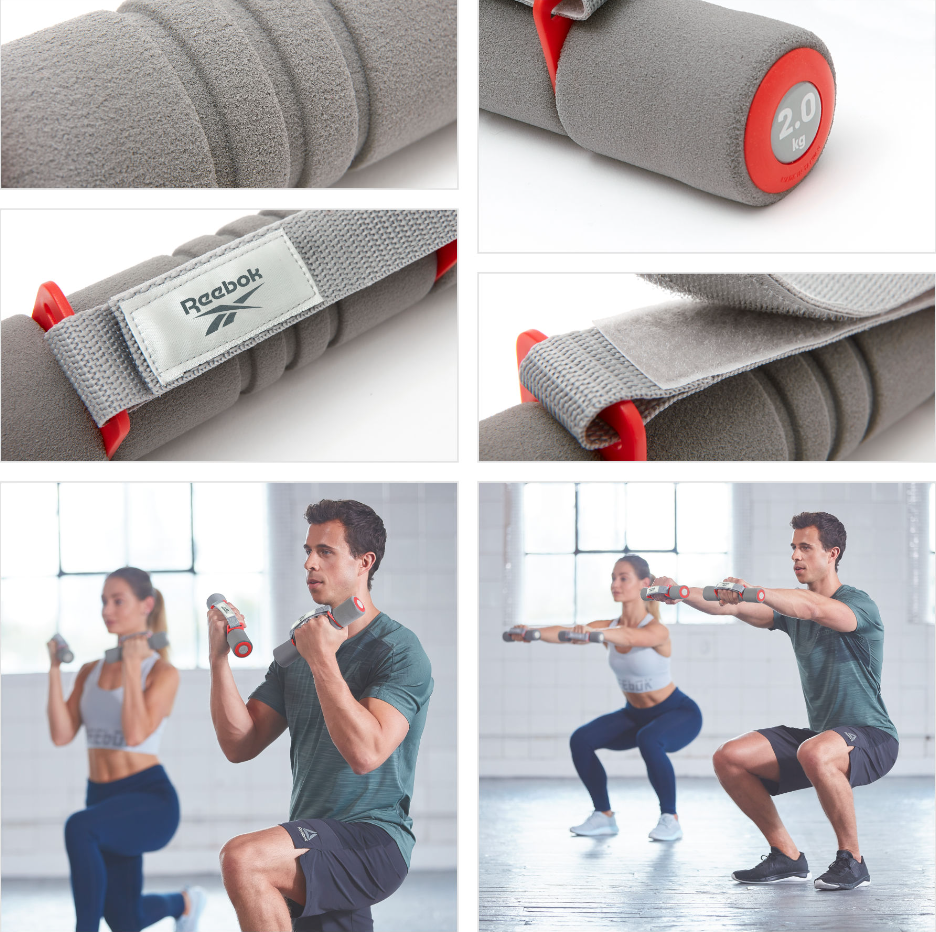 Поролонові гантелі Reebok з ручками розроблені, щоб допомогти користувачеві покращити та підтримувати хорошу фізичну форму. Їх вага 2 х 2 кг робить їх ідеальними для фітнесу, загальнорозвиваючих вправ і бігу. Під час тренувань з легкими вагами всю роботу виконують певні групи м’язів. Це знижує ризик отримання травми під час тренування.