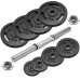 Гантеля складається зі сталевого грифа (хромованого, з різьбою) і міцних металевих дисків. Також вона має рифлені ручки, які запобігають ковзанню в руках користувача під час тренування.