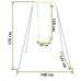 Габарити конструкції — 148×141×176 см — ідеально підходять для встановлення у дворі, на дачі чи в саду. Міцна конструкція витримує навантаження до 45 кг. Ергономічне сидіння розміром 35×17 см забезпечує правильне положення дитини під час гойдання. Гойдалка легко збирається, не потребує спеціальних інструментів — усе вже в комплекті.